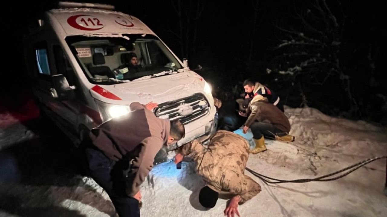 Ekiplerin çalışması sonucu ambulans bulunduğu yerden kurtarılarak yoluna devam etmesi sağlandı.