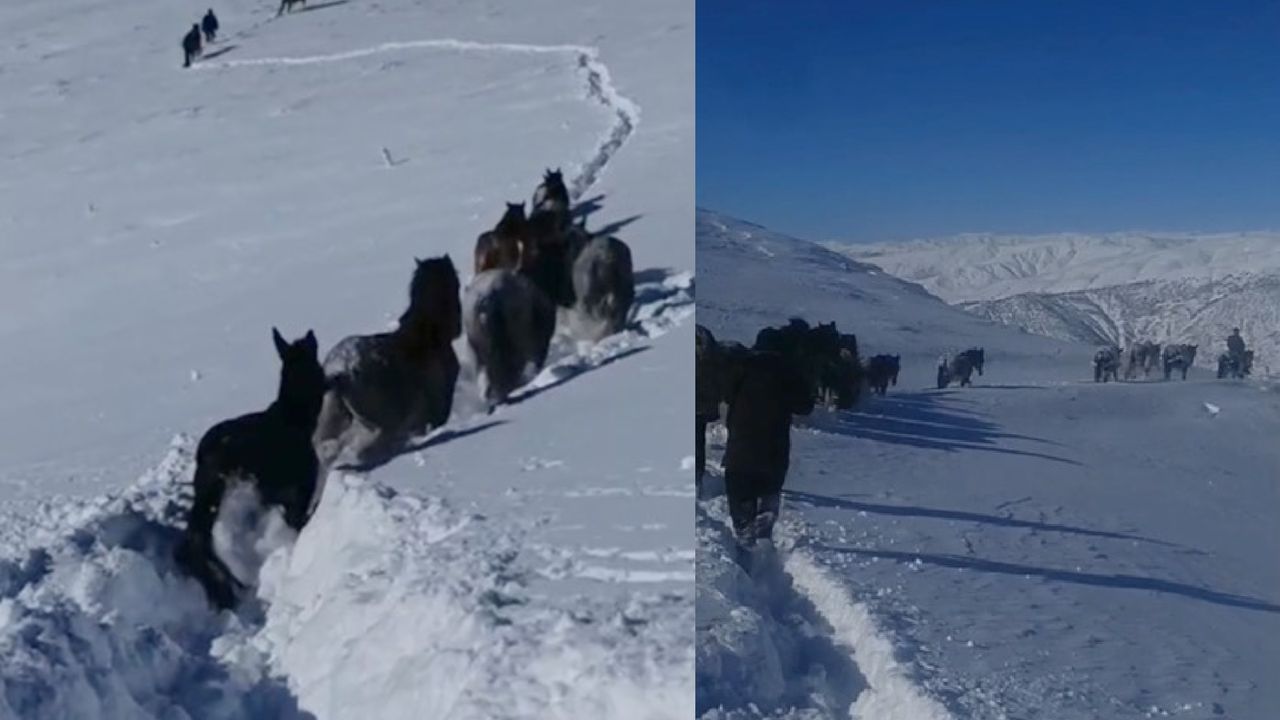 Durumun bildirilmesi üzerine bölgeye intikal eden güvenlik korucuları, zorlu hava ve arazi şartlarına rağmen köylülere yardım ederek karda mahsur kalan at ve katırları güvenli bir şekilde köye ulaştırdı.