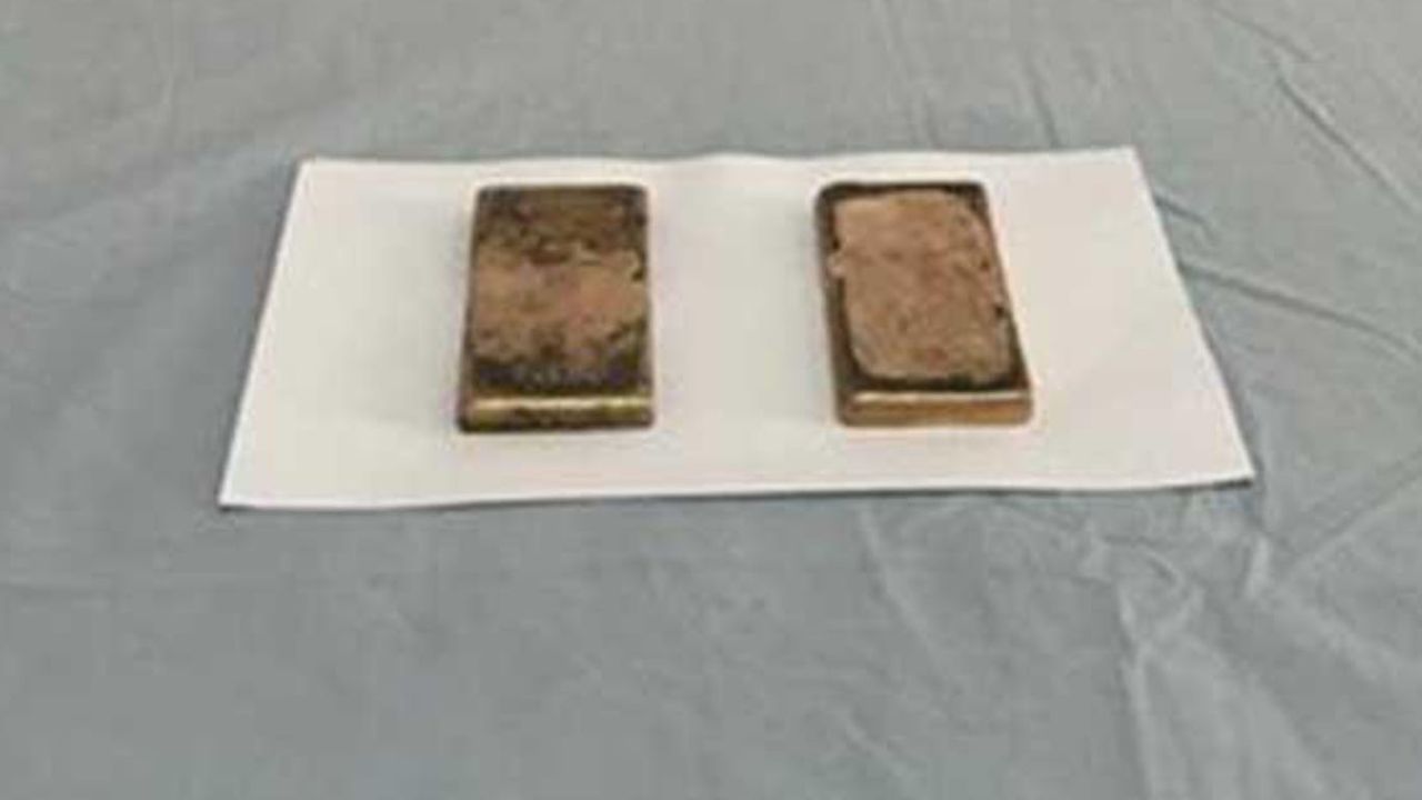 Yapılan aramada, 2 külçe şeklinde toplamda 3 kilogram 456,63 gram altın ele geçirildi.