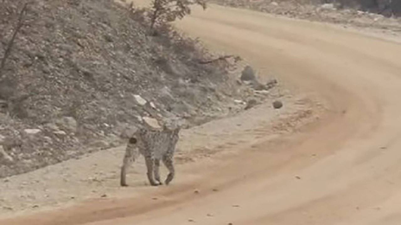 Kara yolunda yürürken çevredeki araçlara ve kameralara aldırış etmeyen vaşak, bir süre yolda ilerledikten sonra ormanlık alana yönelerek gözden kayboldu.