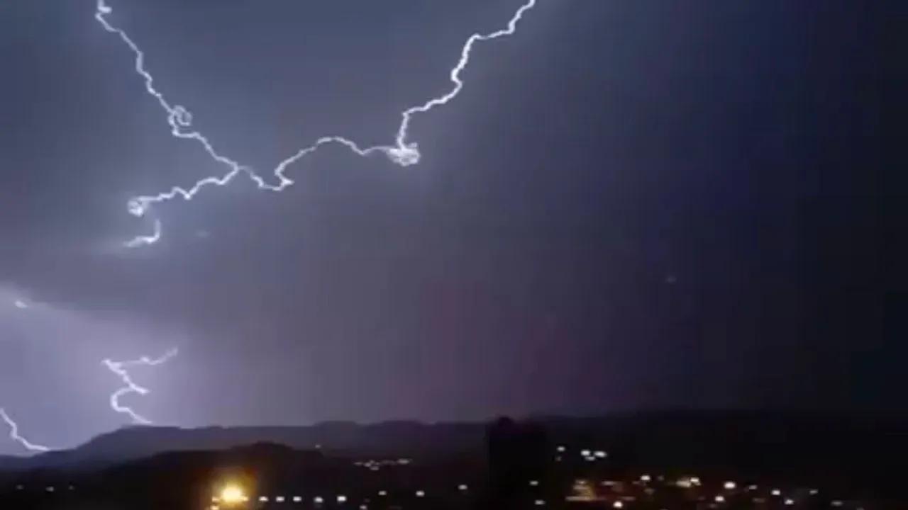 Siirt’in Kurtalan ilçesinde gece saatlerinde etkileyici bir doğa olayı yaşandı. İlçe semalarında peş peşe çakan şimşekler, yağmur yağmamasına rağmen gökyüzünü aydınlatarak adeta gündüz etkisi yarattı.