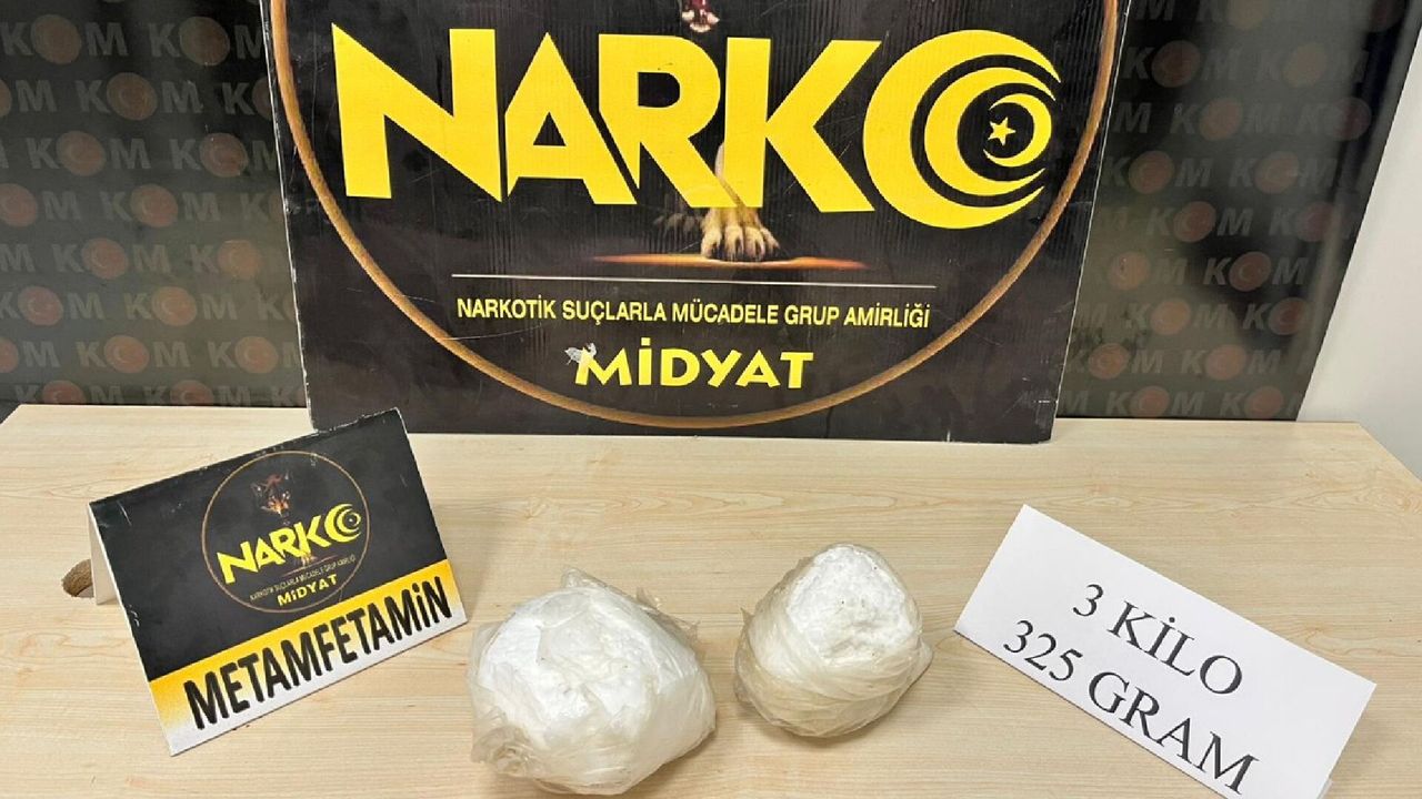 Midyat ilçesinde İl Emniyet Müdürlüğü ekipleri tarafından gerçekleştirilen denetimlerde şüpheli bir araç durduruldu. Araçta yapılan aramada toplam 3 kilo 325 gram metamfetamin bulundu.