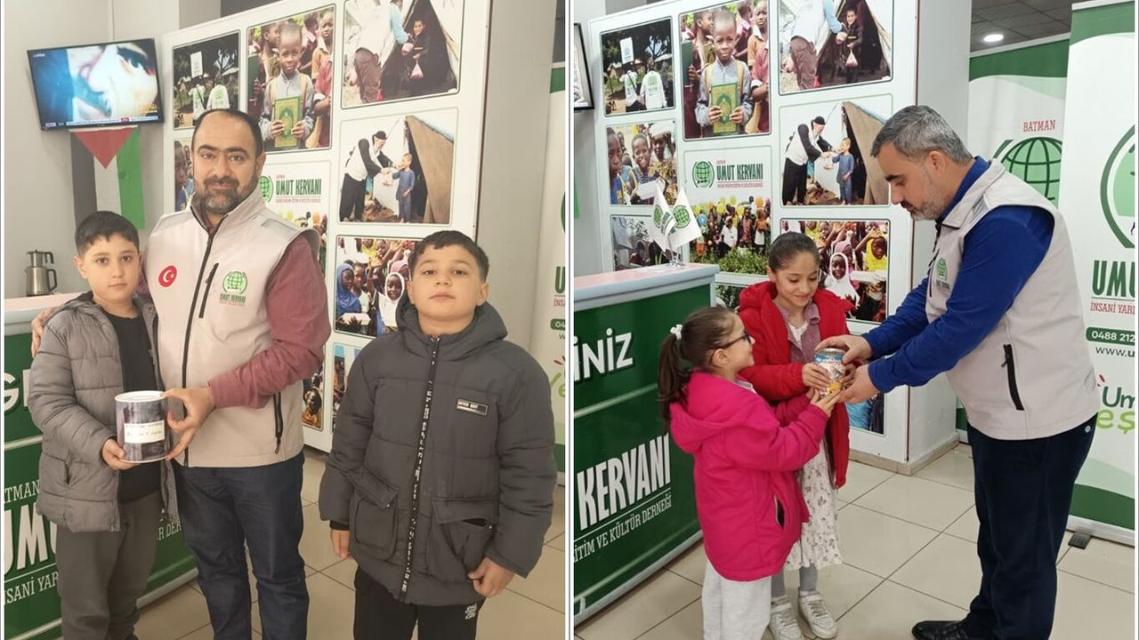 Batman’da küçük yaşlarına rağmen büyük bir duyarlılık örneği sergileyen çocuklar, anlamlı bir bağışla takdir topladı. Aytaç ve Muaz Dedebek kardeşler ile Hümeyra ve Hayrunnisa Tekin kardeşler, biriktirdikleri harçlıklarını Gazze’deki ihtiyaç sahiplerine ulaştırılmak üzere Umut Kervanı’na teslim etti.