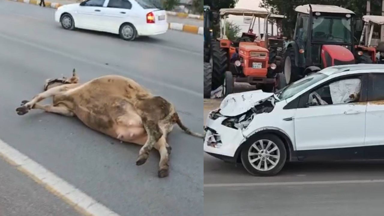 Kazanın ardından telef olan inek ve hasar gören aracın yoldan kaldırılmasıyla trafik normale döndü.