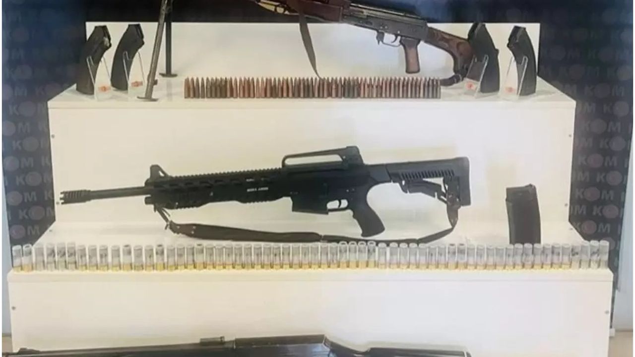 Belirlenen adreslerde yapılan aramalarda 1 adet silah, 110 fişek, 4 şarjör, 3 av tüfeği ile 88 av tüfeği kartuşu ele geçirildi.