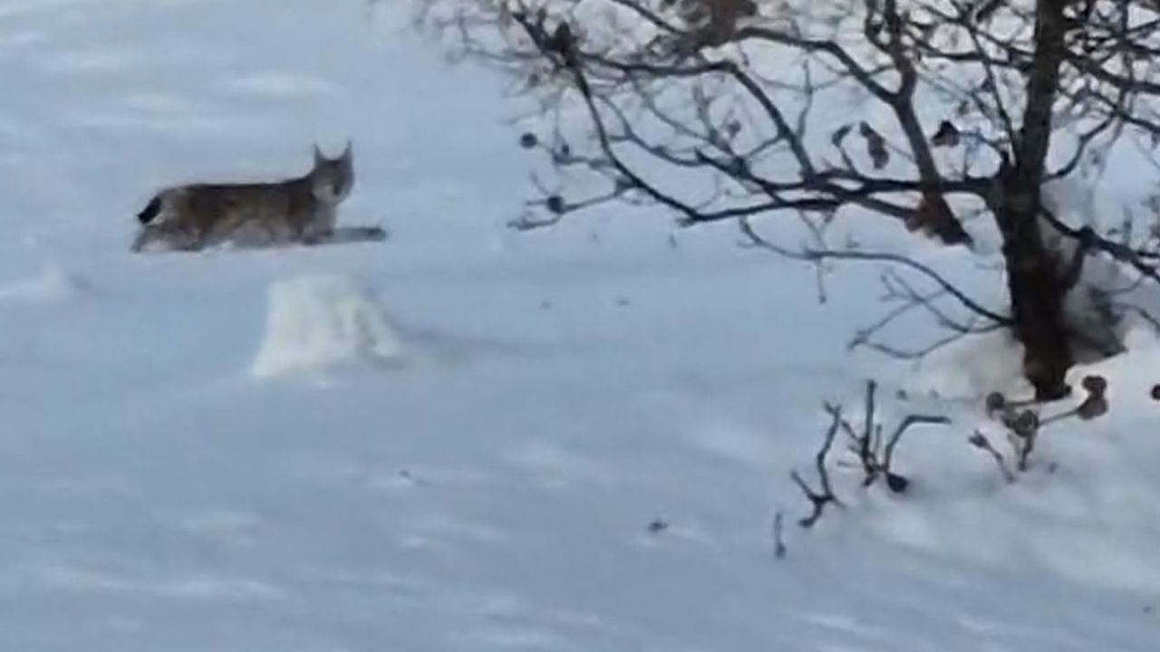 Karlıova ile Yedisu arasındaki yüksek rakımlı kırsal alanda kaydedilen görüntülerde, vaşak karlar üzerinde ilerlerken fark edildi. Nadir görülen bu yaban hayvanı, vatandaşlar tarafından cep telefonlarıyla kayda alındı.