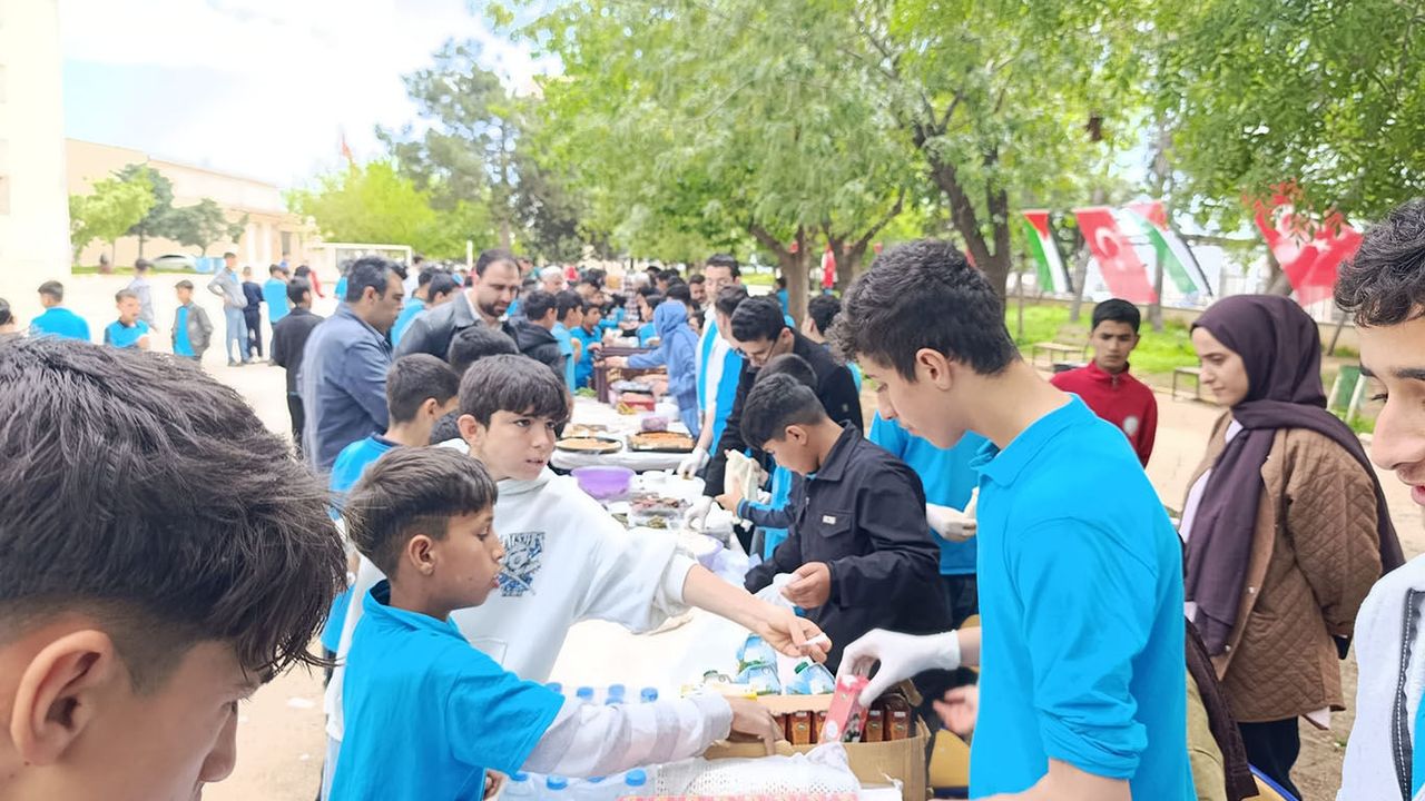 Şanlıurfa’nın Haliliye ilçesinde bulunan Mehmet Zahid Kotku Anadolu İmam Hatip Lisesi’nde, Gazze’ye destek amacıyla kermes düzenlendi.