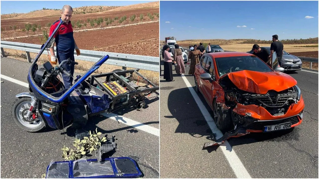 Kaza, öğleden sonra Midyat-Dargeçit kara yolu üzerindeki Barıştepe Mahallesi mevkisinde gerçekleşti. Plakası 16 RS 058 olan otomobil ile Abdulbaki Eroğlu’nun (60) kullandığı 3 tekerlekli motosiklet çarpıştı. Çarpışmanın etkisiyle motosiklet sürücüsü Abdulbaki Eroğlu olay yerinde yaşamını yitirirken, oğlu Mehmet Salih Eroğlu (19) ağır yaralandı. Otomobilde bulunan Ömer Ö. (30), Demet Ö. (28) ve 10 aylık Melih Ö. de kazada yaralandı.