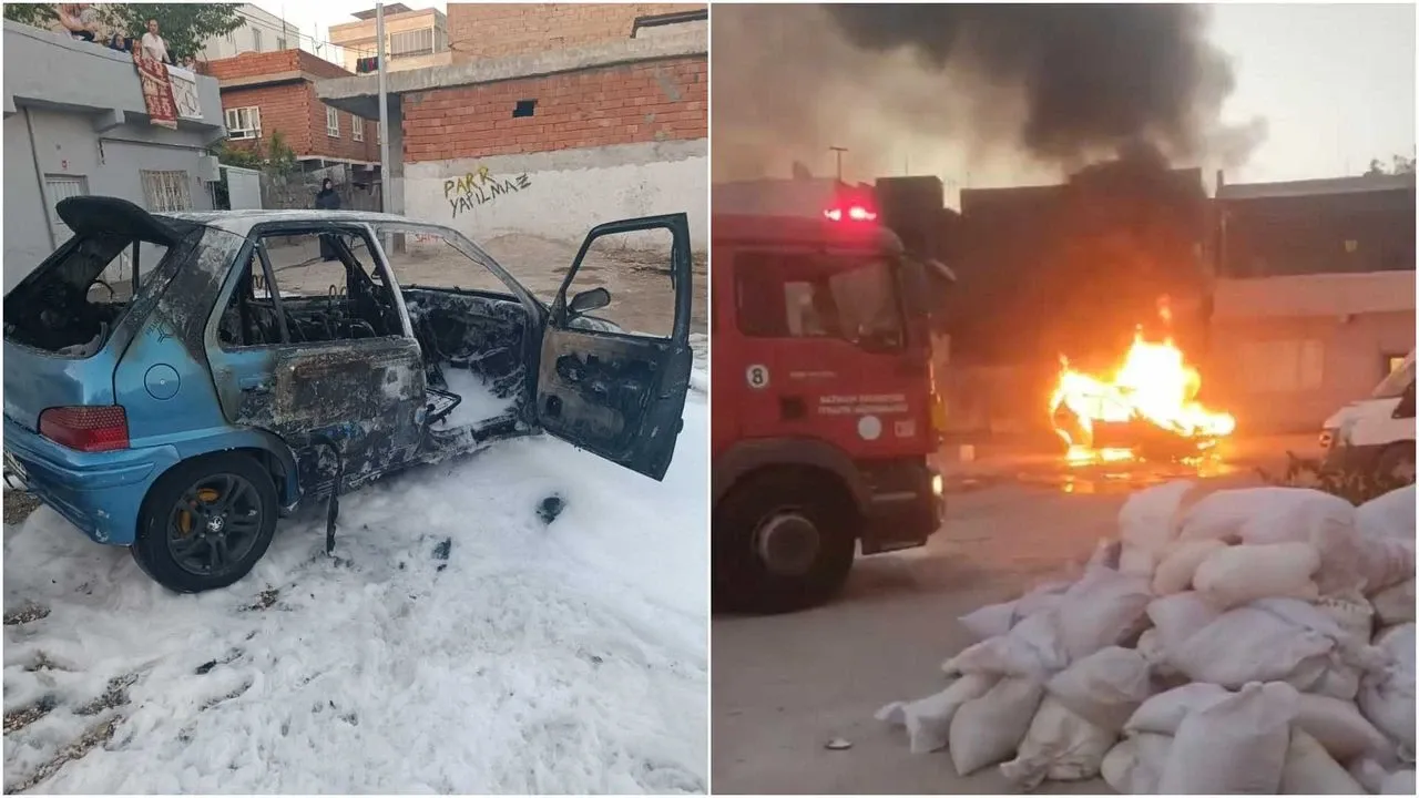 Batman’da park halindeki bir otomobil, henüz belirlenemeyen bir nedenle alev aldı.