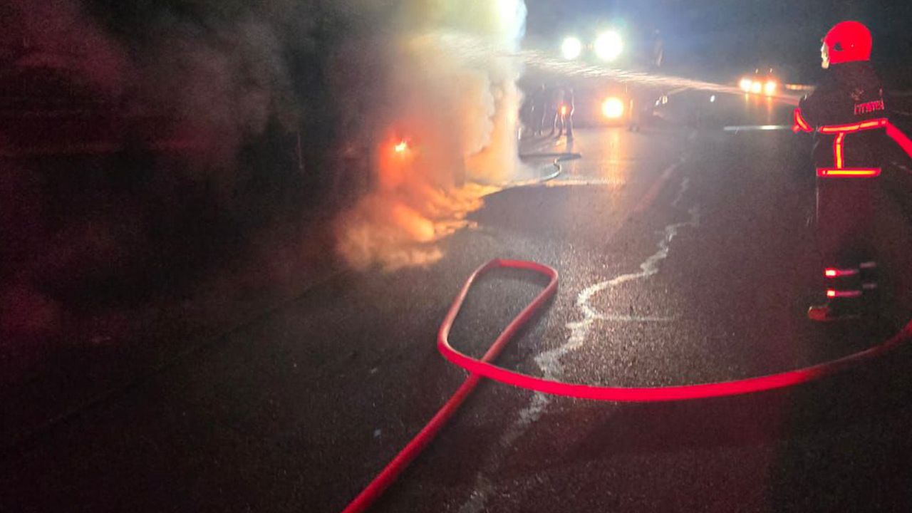 Edinilen bilgiye göre sürücü, dumanı fark ederek aracı emniyet şeridine çekti.