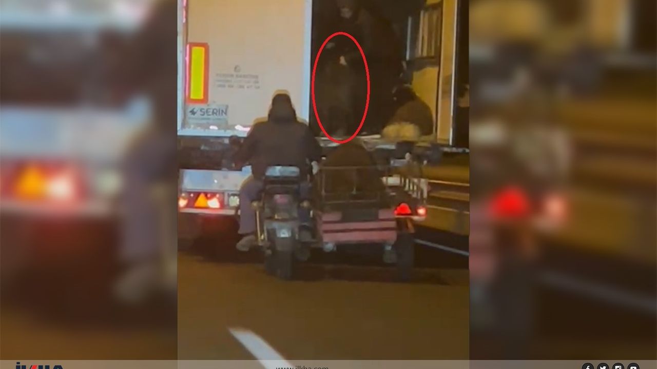 30 Ekim 2025 gecesi saat 23.45 sıralarında gerçekleşen olay, yoldan geçen bir aracın kamerasına yansıdı. Görüntülerde plakasız, sepetli bir motosikletle tıra yaklaşan iki kişinin, dorsedeki küçükbaş hayvanları çaldığı anlar yer aldı.