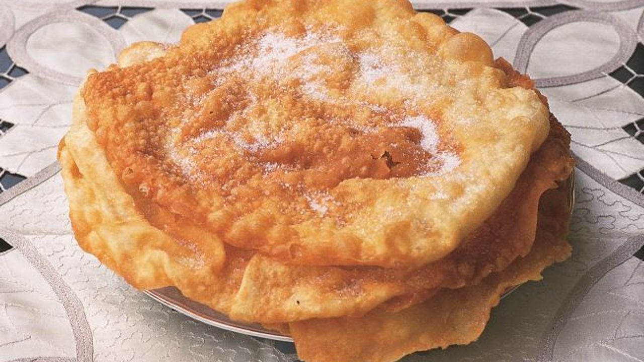 Merdane ile tekrar açın ve 10x10 cm'lik kare parçalar kesin. Kızdırılmış sıvıyağda önlü arkalı kızartın. Hamurların her birinin üzerine tozşeker serpin ve servis yapın.
