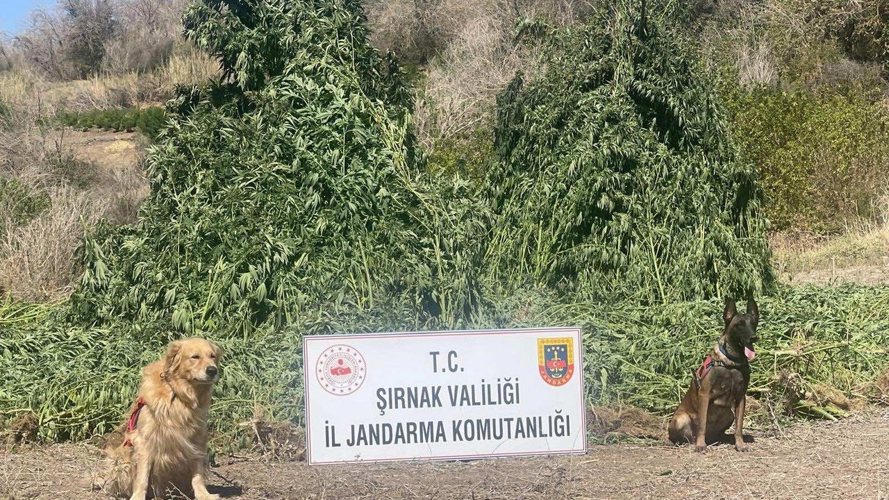 Şırnak İl Jandarma Komutanlığı Narkotik ve KOM Şube Müdürlüğü ekipleri, Cizre ilçesinde hassas burunlu narkotik köpekleri Sayaç ve Vada ile uyuşturucu operasyonu gerçekleştirdi. Operasyonda, piyasa değeri yaklaşık 1,5 milyar TL olan 42 bin 300 kök kenevir bitkisi, kubar esrar, 2 adet AK-47 piyade tüfeği ve mühimmat ile 1 adet ruhsatsız av tüfeği ele geçirildi.