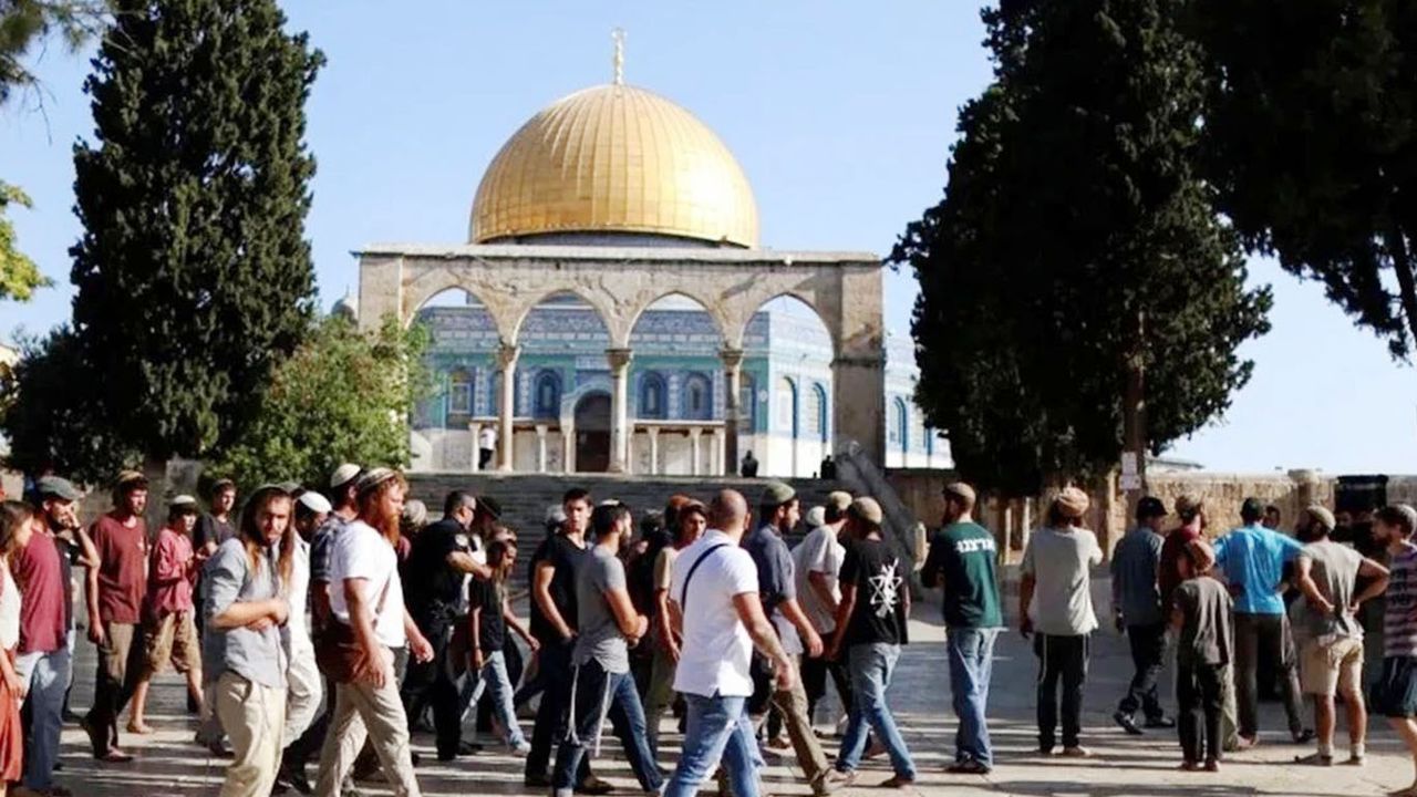 Kutsal mekânların içerisinde provokatif turlar atan işgalciler, Müslümanlara ait manevi değerleri hiçe sayarak büyük bir hakarette bulundu.