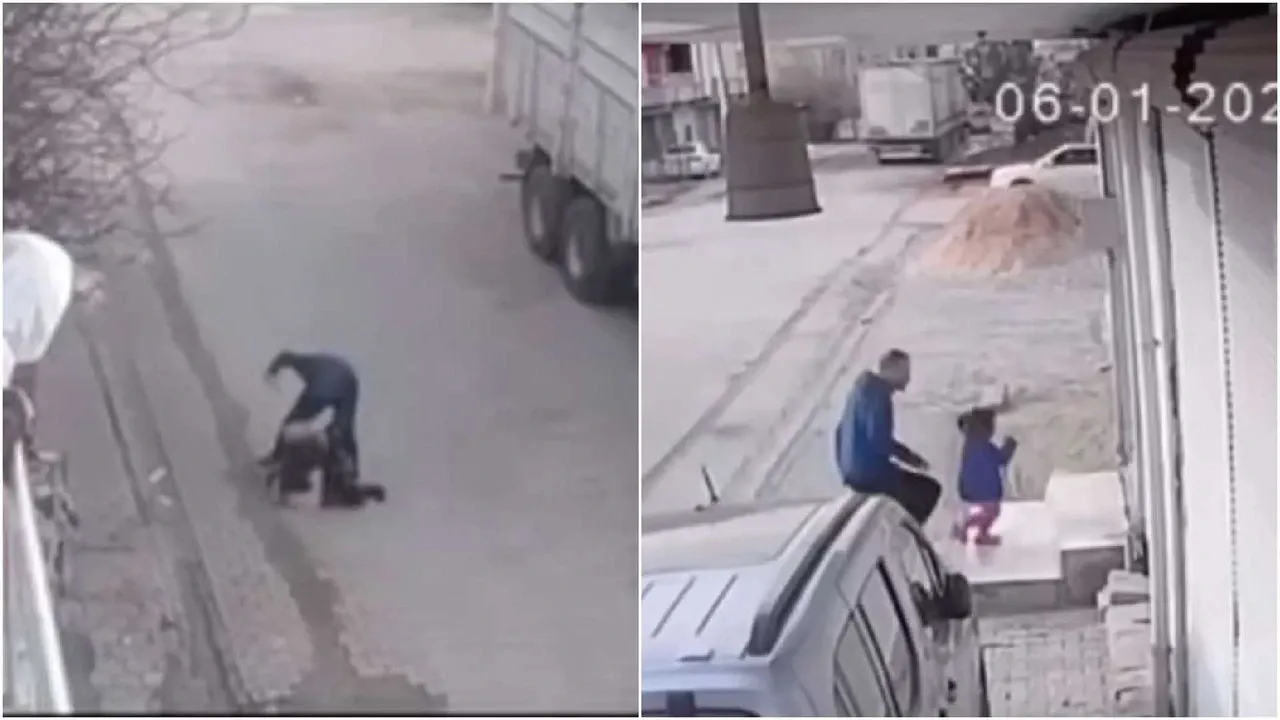 Ardından saldırgan, evinin önünde oyun oynayan bir kız çocuğuna yöneldi. Şüpheliyi fark eden çocuk evine doğru kaçmaya çalıştı ancak şahıs, kız çocuğunun başına yumruk attı. Yumruğun şiddetiyle çocuk evin içine doğru savruldu. Yaşanan korku dolu anlar güvenlik kameraları tarafından kaydedildi.