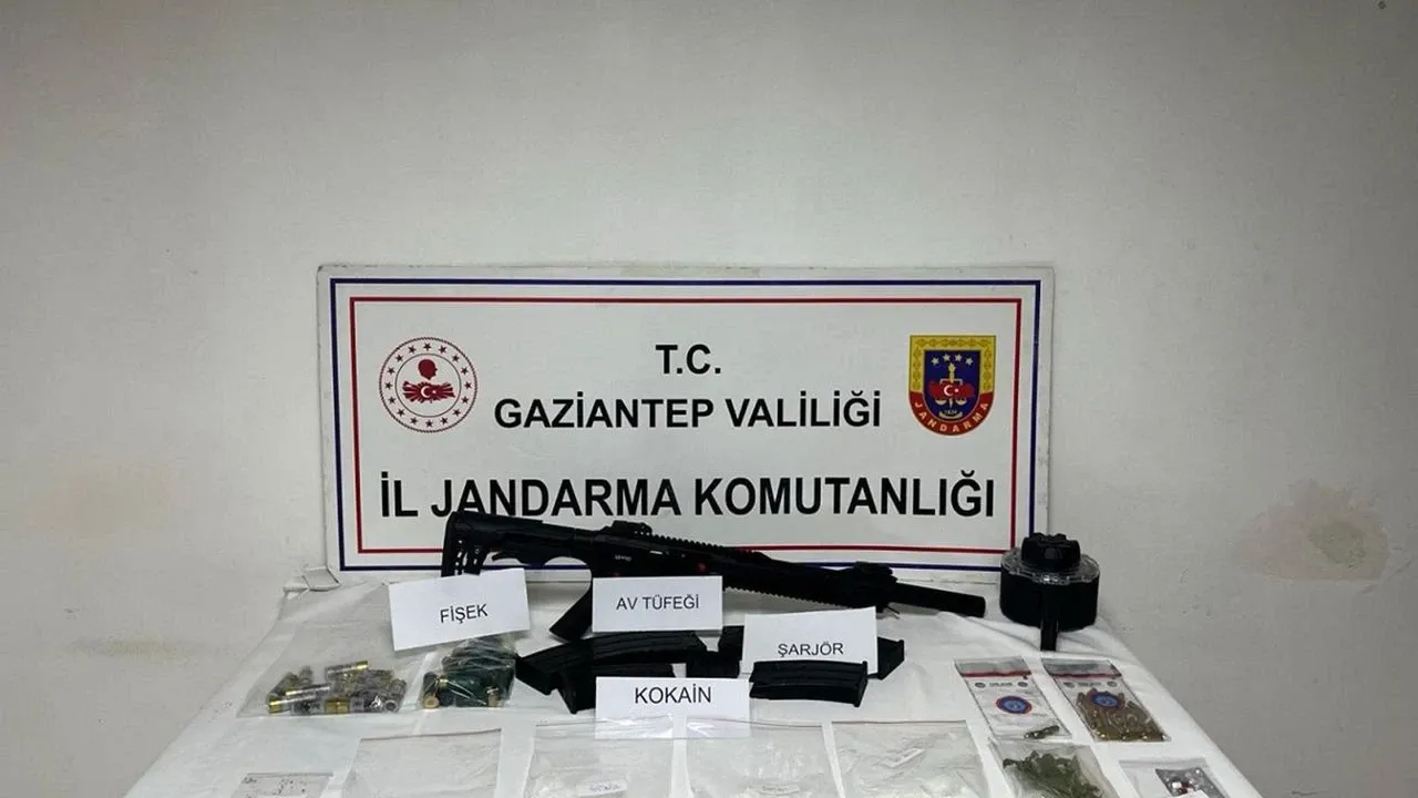 Adreslerde yapılan aramalarda 410 gram kokain, 5 adet uyuşturucu hap, 2 gram kubar esrar, 11 kök kenevir, 1 av tüfeği, 31 tabanca fişeği, 31 av tüfeği fişeği, ayrıca 5 cep telefonu ve sim kart ele geçirildi.