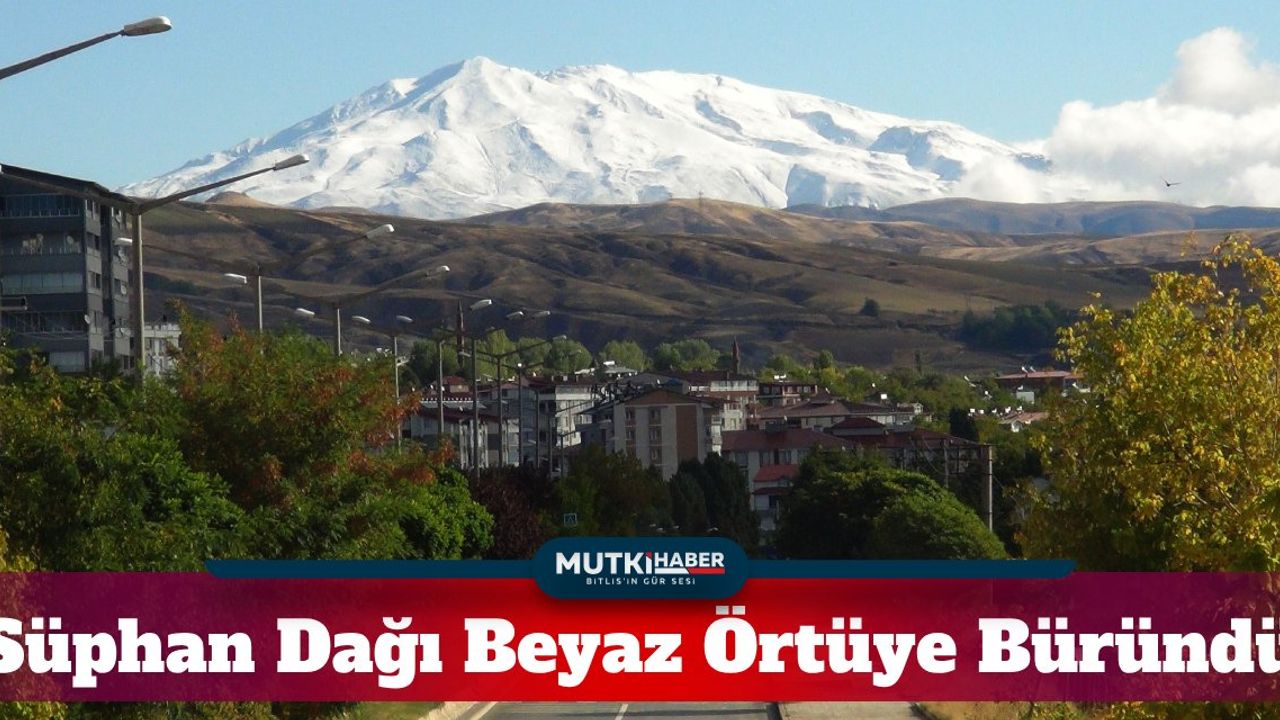 Bitlis'in Adilcevaz ilçesinde bulunan yüksekliği 4 bin 58 metreyi aşan Süphan Dağı, mevsimin ilk karıyla beyaz bir örtüye büründü. Son dört gündür etkili olan yağışlar, yüksek kesimlerde kar yağışına dönüştü. Bugün itibariyle güneşin tekrar kendini gösterdiği kentte, beyaza bürünen dağlar muhteşem bir manzara oluşturdu.
