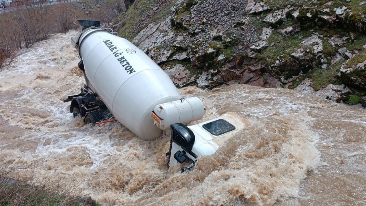 Bitlis'in Tatvan ile Hizan ilçeleri arasındaki dereye beton mikseri uçarken, sürücünün ise akıntıya kapılarak kaybolduğu bildirildi.