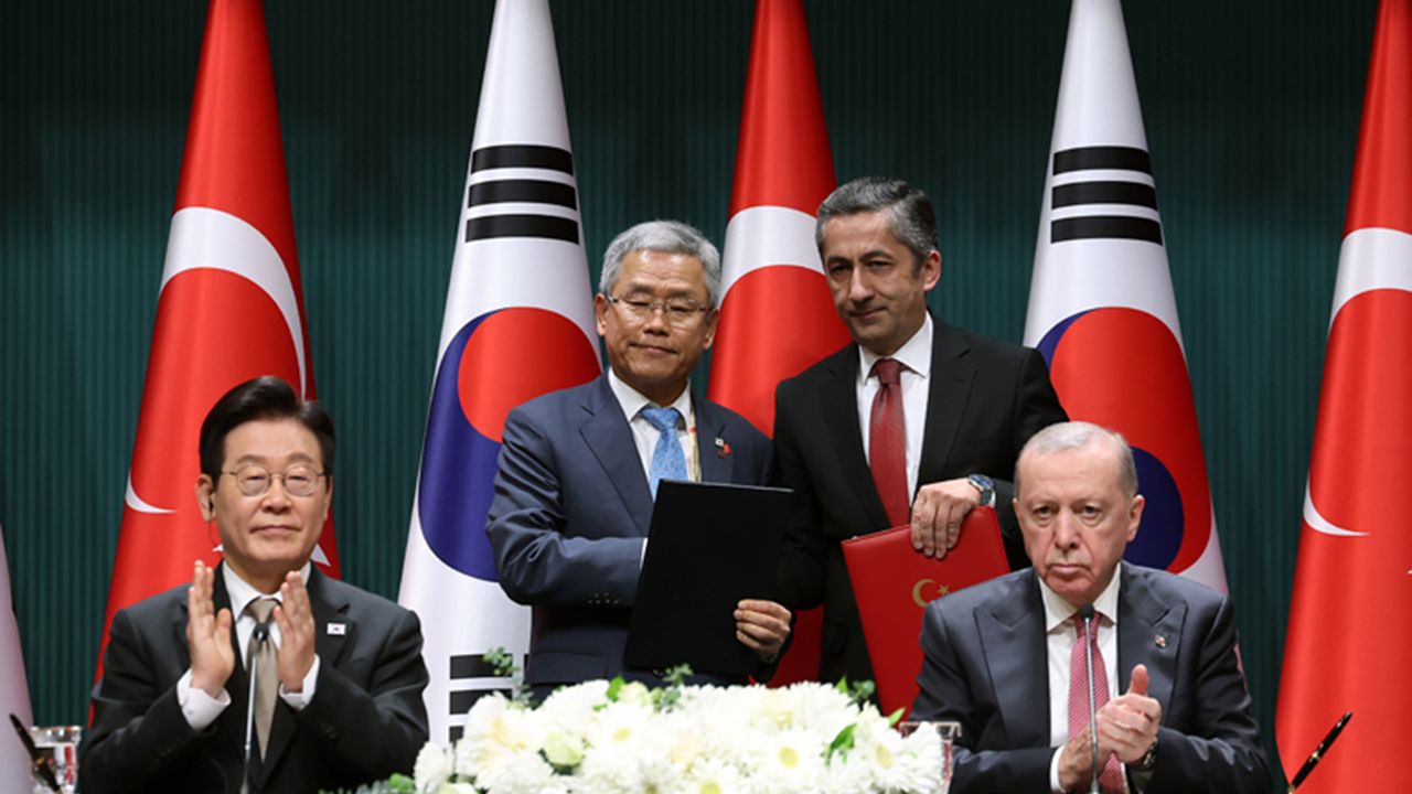 Cumhurbaşkanlığı Külliyesi'nde Cumhurbaşkanı Recep Tayyip Erdoğan ve Güney Kore Devlet Başkanı Lee Jae Myung arasında baş başa ve heyetler arası görüşmelerin ardından çeşitli anlaşmaların imza törenine geçildi.