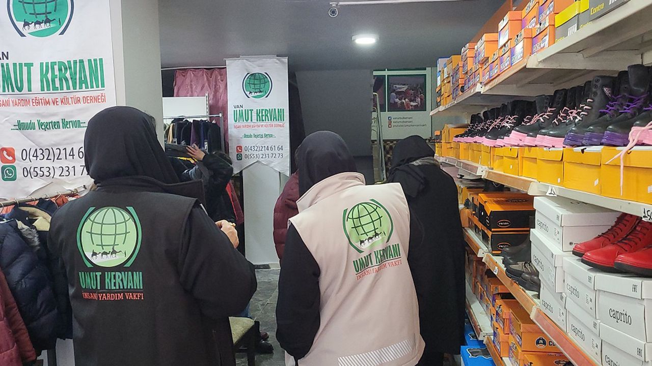 Van Umut Kervanı İnsani Yardım Derneği, hayırseverlerin bağışlarıyla aldığı kışlık kıyafetleri yetim ve ihtiyaç sahibi ailelere dağıttı.