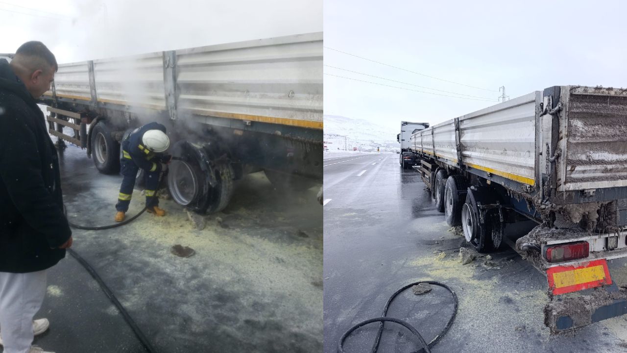 Olay, kara yolunun 75’inci kilometresinde meydana geldi. Edinilen bilgilere göre, sürücüsünün ismi öğrenilemeyen tır, seyir halindeyken balatalarının aşırı ısınması sonucu lastiklerinden alev aldı. Durumu fark eden diğer sürücülerin uyarısı üzerine tır sürücüsü aracı yol kenarına çekerek itfaiyeye haber verdi.