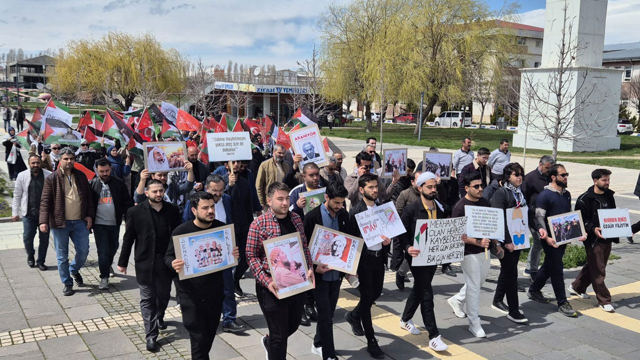Siyonist rejimin her geçen gün işgali genişlettiğini söyleyen Akkaya, “Gün geçmiyor ki siyonist rejim yeni bir baskı ve hukuksuzluğa kalkışmasın. Kullanım hakkı tamamen Müslümanlara ait olmasına rağmen yakın zamanda İran savaşını bahane ederek Müslümanların Mescid-i Aksaya girişi uzun süre yasaklanmış, son olarak da Mescid-i Aksanın avlusuna Siyonist rejimin bayrağı asılmıştır. Filistin’de, Lübnan’da ve diğer Müslüman coğrafyalarda yaşananlar bir “çatışma” değil, açık bir işgal ve zulümdür. Çocukların, kadınların, sivillerin hedef alındığı; evlerin, hastanelerin, ibadethanelerin bombalandığı bir ortamda susmak ise, zulme ortak olmaktır. Biz üniversiteli gençler ve bütün üniversite personeli olarak susmayacağız. Çünkü inanıyoruz ki zulüm karşısında susan dilsiz şeytandır. Bugün burada sadece Filistin için değil, Müslüman coğrafyanın dört bir yanında yaşanan adaletsizlikler için de konuşuyoruz. Küresel güçlerin çıkarları uğruna Müslüman coğrafyada yürüttüğü politikalar; savaşları, kaosu ve gözyaşını beraberinde getirmiştir. Bu bağlamda Amerika Birleşik Devletleri’nin Müslüman coğrafyada izlediği müdahaleci ve yıkıcı politikaları şiddetle kınıyoruz.” ifadelerini kullandı.