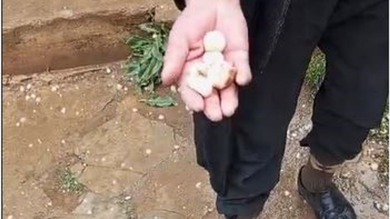 Kısa süreli olmasına rağmen etkili olan dolu yağışı, cep telefonlarıyla kaydedildi.