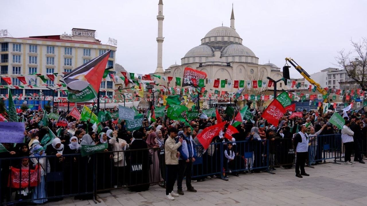 “Vahdet ve Kurtuluş Önderimiz Hazreti Muhammed” temasıyla Van Kent Meydanı’nda gerçekleştirilen etkinlik, yoğun katılım ve manevi atmosferiyle dikkat çekti. Alanda ihtiyaç sahipleri yararına kullanılmak üzere kermes kuruldu. Tevhid bayrağında Şeyh Said ve Said Nursi’nin posterlerinin yer aldığı bir bayrak alana yerleştirildi.