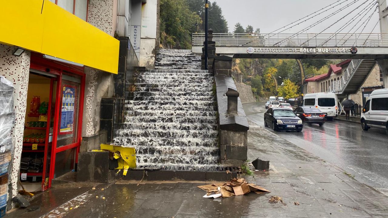 Cadde ve yollarda biriken ve merdivenlerden şelale şeklinde akan yağmur suları vatandaşların tepkisine neden oldu.