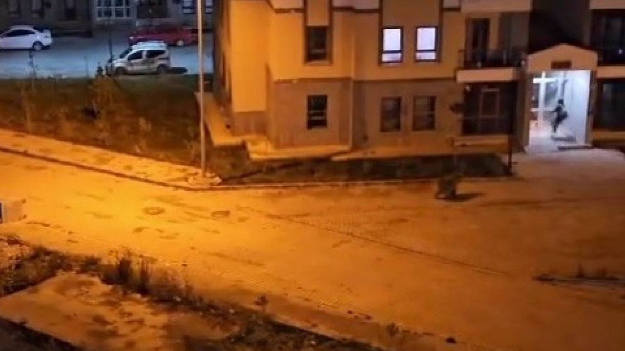 Gece saatlerinde evine gitmek isteyen bir vatandaş, çöplükte yiyecek arayan boz ayı tarafından bir süre kovalanmaya başladı. Bu korku dolu anlar cep telefonu kamerasıyla kaydedildi. Son anda binanın içine girerek canını kurtaran vatandaş, ayıdan kaçarken mahalledeki köpekler de uzun süre ayının çevresinde bekledi.
